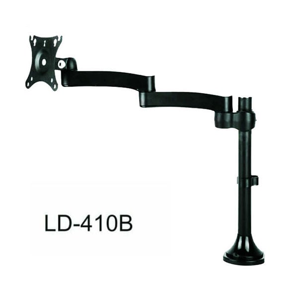 پایه رومیزی مانیتور LCDARM مدل LD-410 Bمیباشد از جنس الومینیوم رنگ کوره ای استاتیک و بسیار بادوام بوده است .این پایه مانیتور مناسب برای سایز 10 تا 29 اینچ و تحمل وزن 10 کیلوگرم را دارد پایه مانیتور LCDARM مدل LD-410B برای مانیتور هایی که اندازه پیچ های پشت مانیتور آنها در ابعاد 10×10 و 7.5×7.5 باشد مورد استفاده قرار میگیرد. پایه رومیزی LD-410B با توجه به امکان گردش 270 درجه ای حول محورY و توانایی تنظیم ارتفاع بسیار زیاد( 435mm ) از سطح میز و همچنین با داشتن دو بازوی متحرک به طول 418mm از محور نصب، امکان بسیار خوبی را برای کاربران جهت استفاده بهینه از فضای زیرین مانیتور ال ای دی یا ال سی دی خود فراهم آورده است.